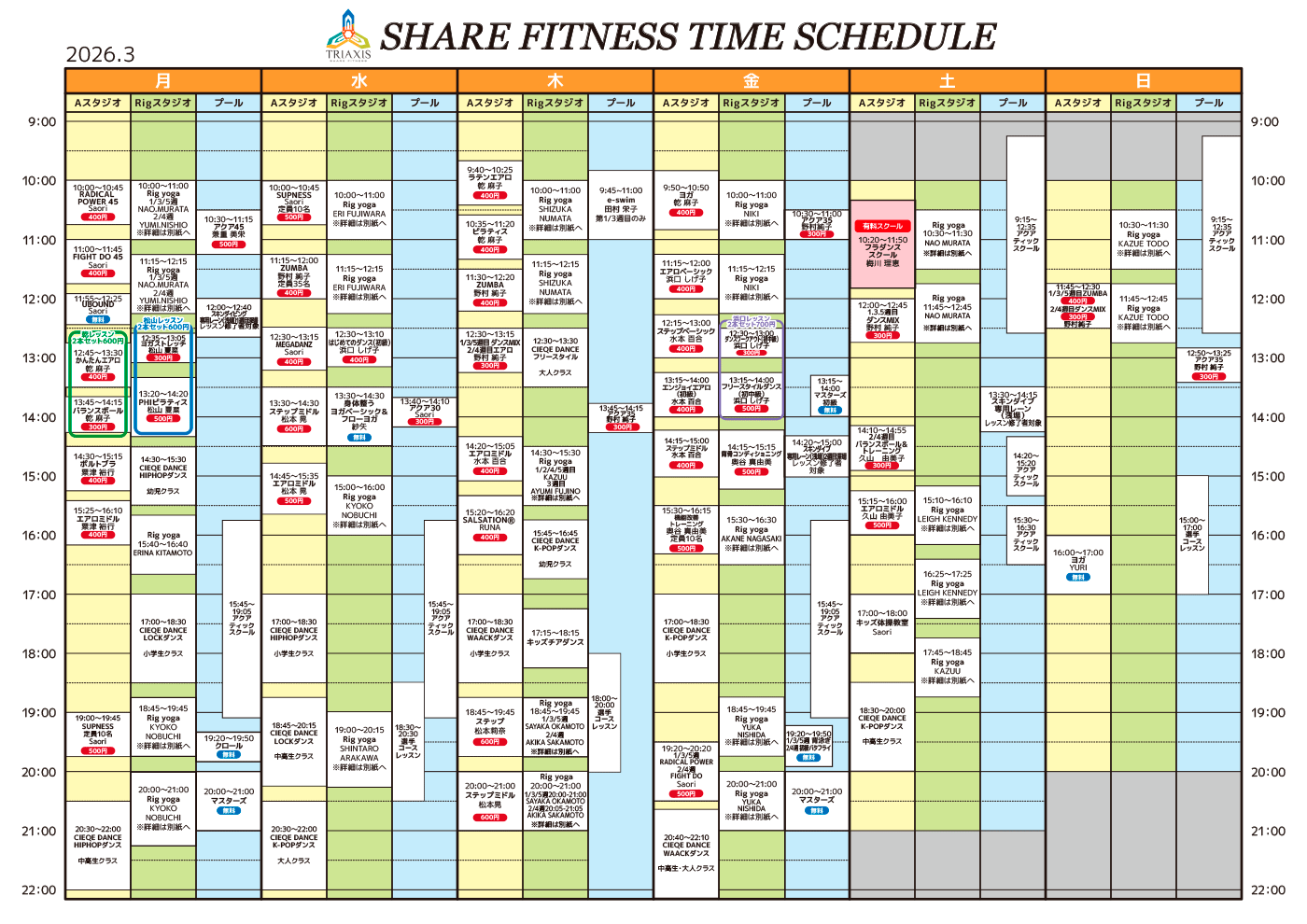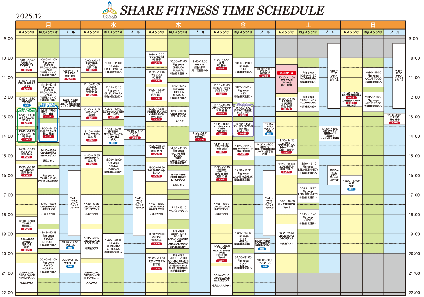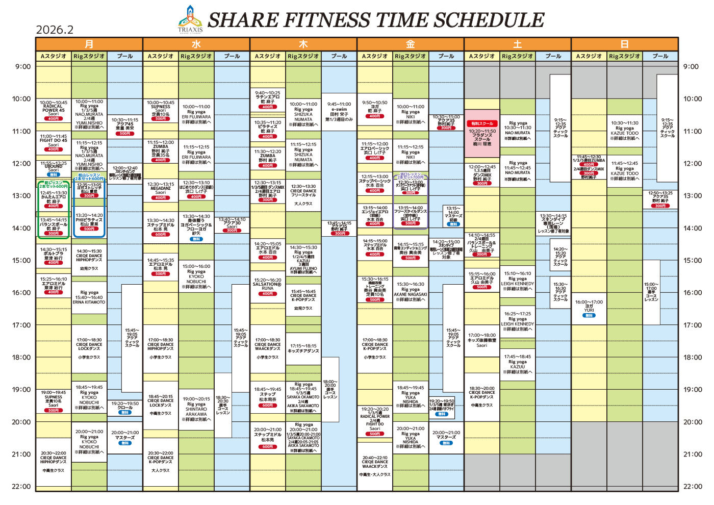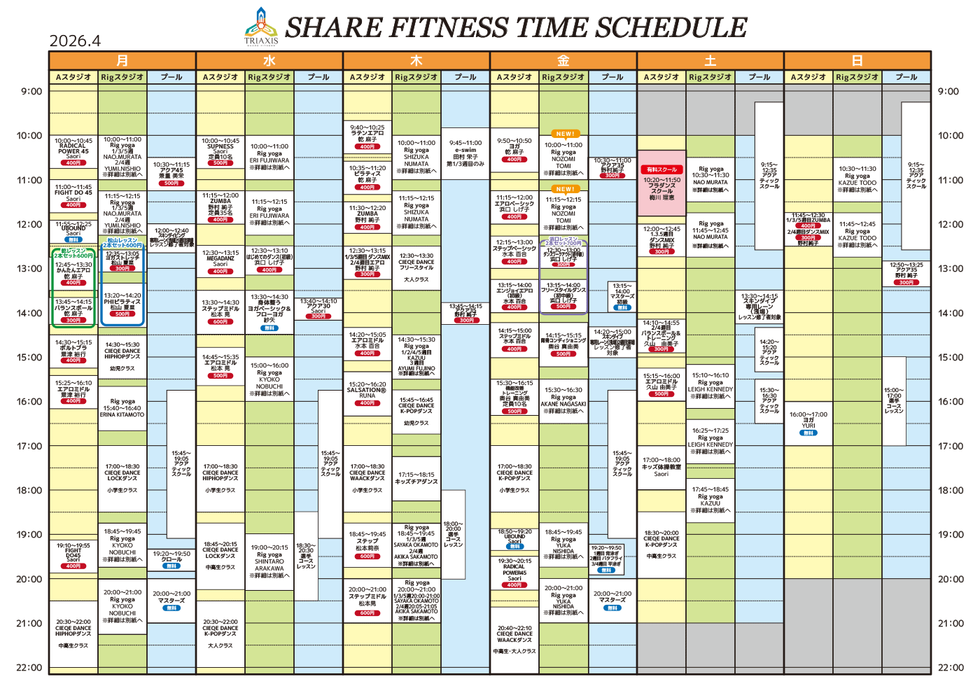 是非、多彩なプログラムにご参加いただき、素晴らしいインストラクターと素敵な時間をお過ごしください。ここTRIAXISが、元気になれる心地良い場所でいつまでもありつづけますように、会員様もインストラクターも施設運営スタッフも皆でシェアして、ウェルネスな(輝くような生き生きとした)環境を一緒に作り上げてゆきましょう。