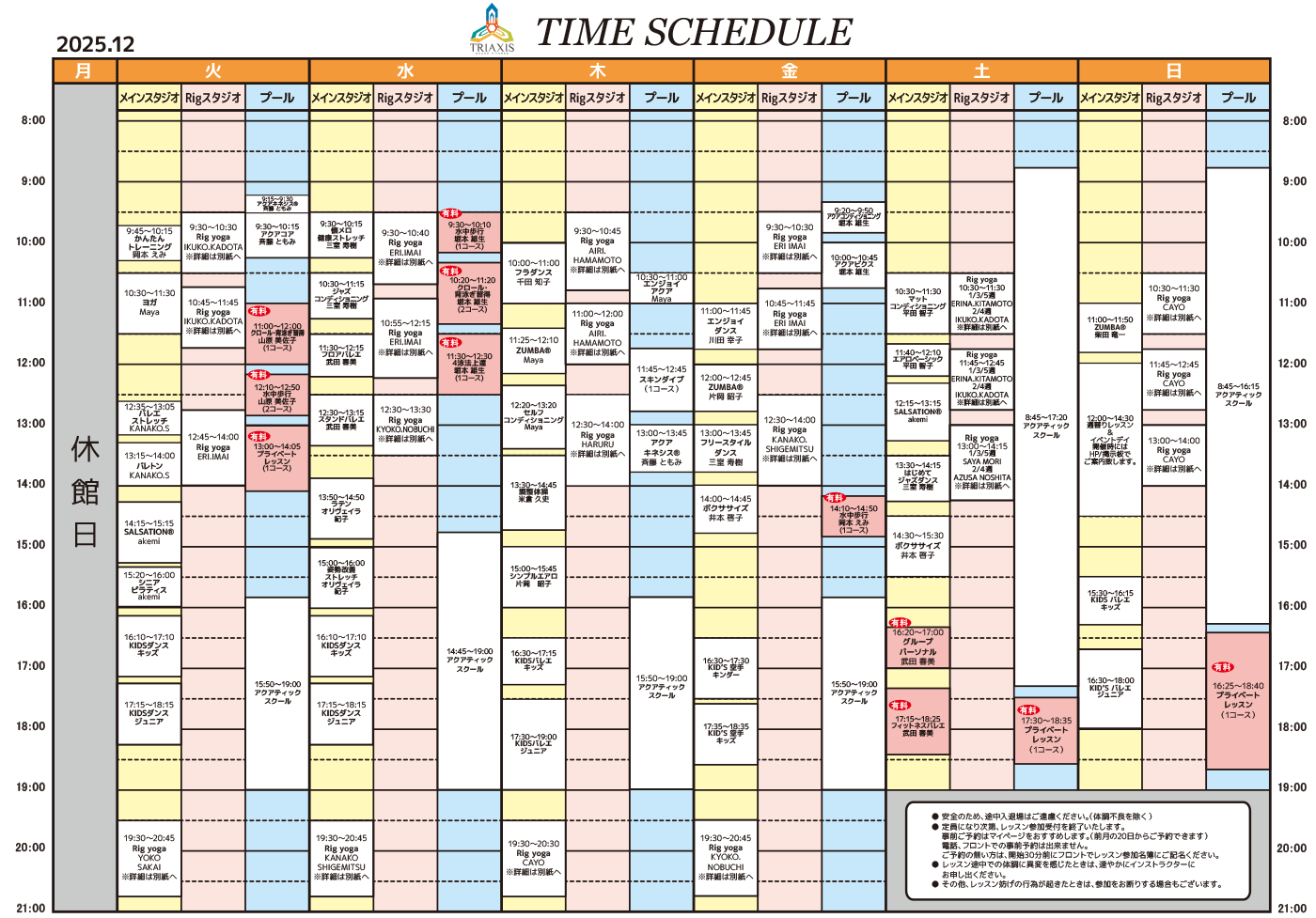※ インストラクターの都合により、プログラム・内容を変更する場合がございます。